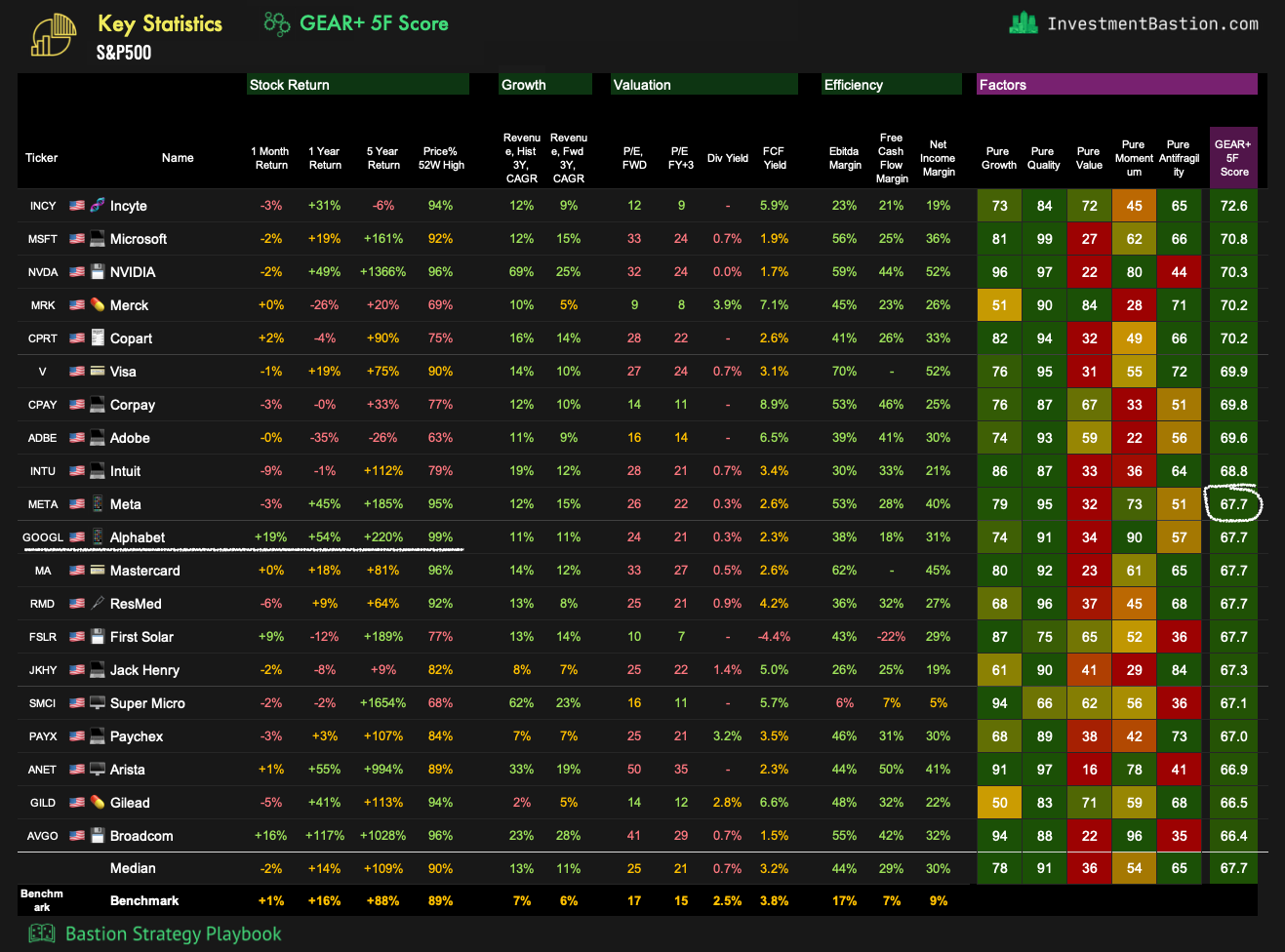 The market views this as highly positive. Alphabet is among the best monthly performers within the S&P 500 stocks that have a high Growth + Efficiency at Reasonable Price rating.