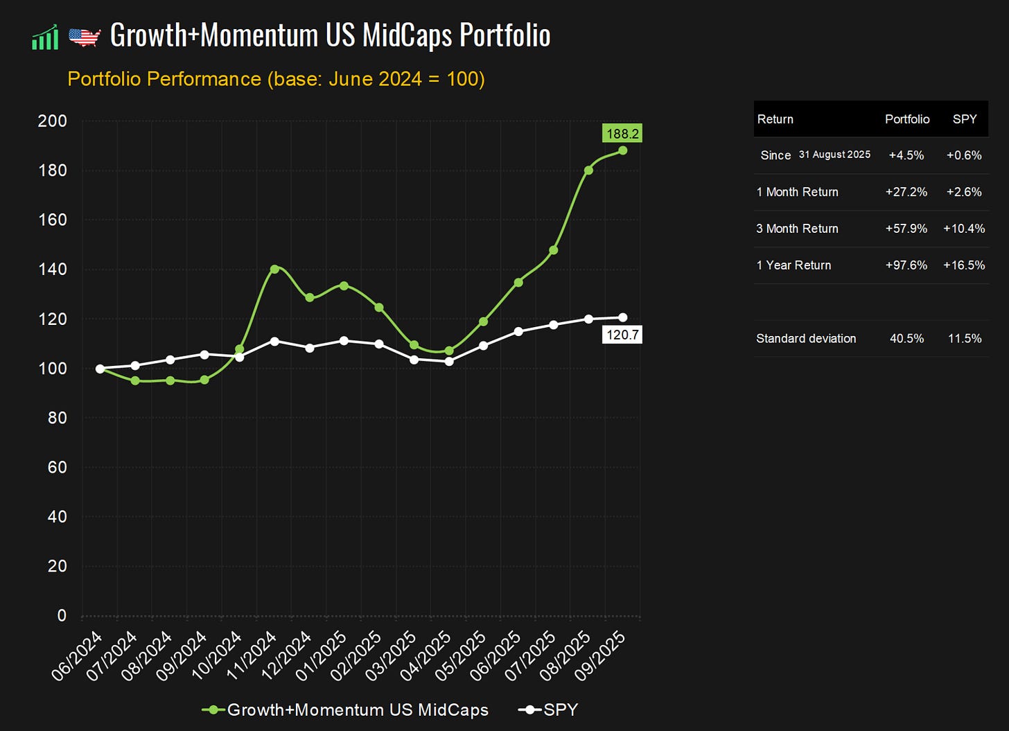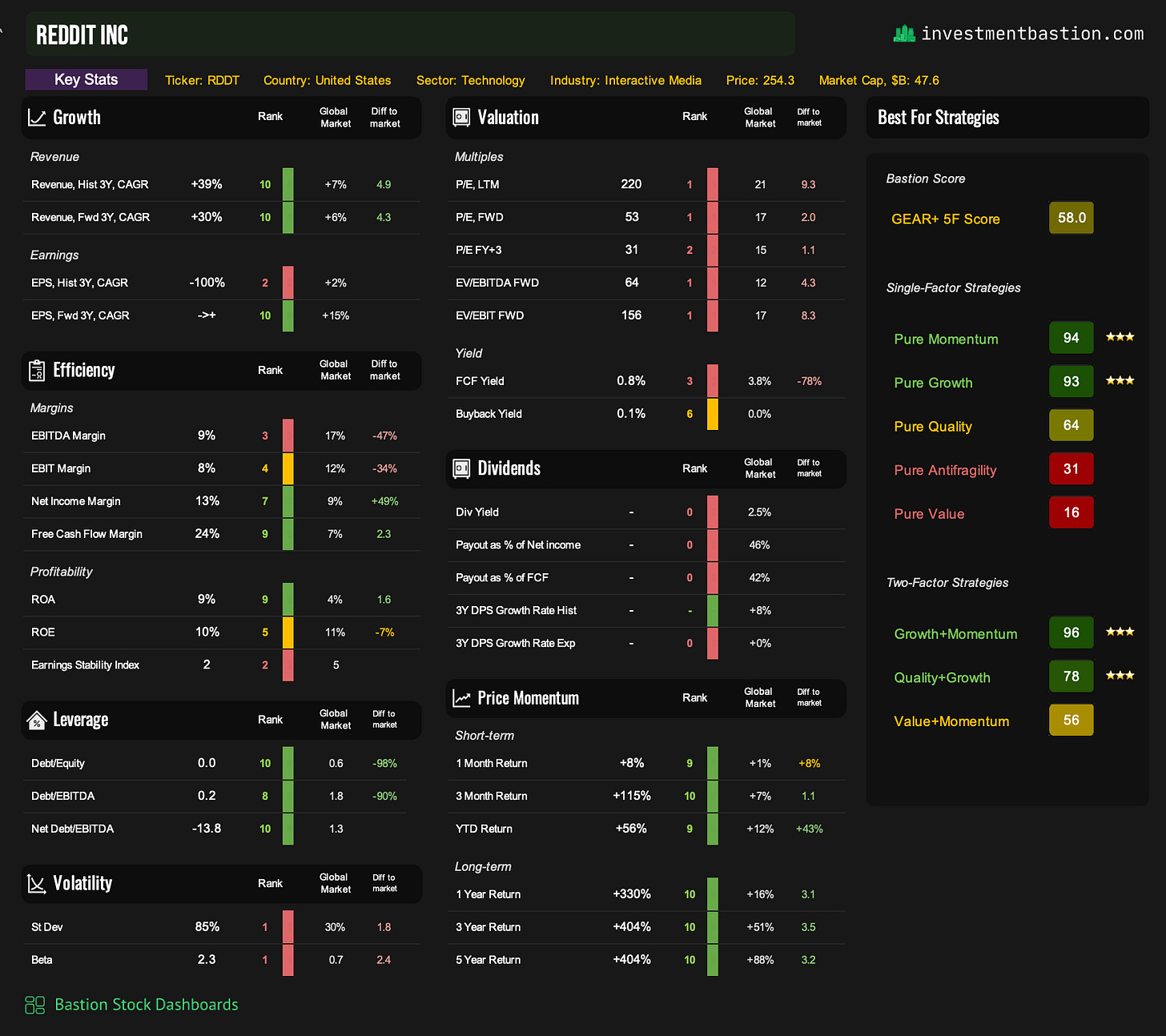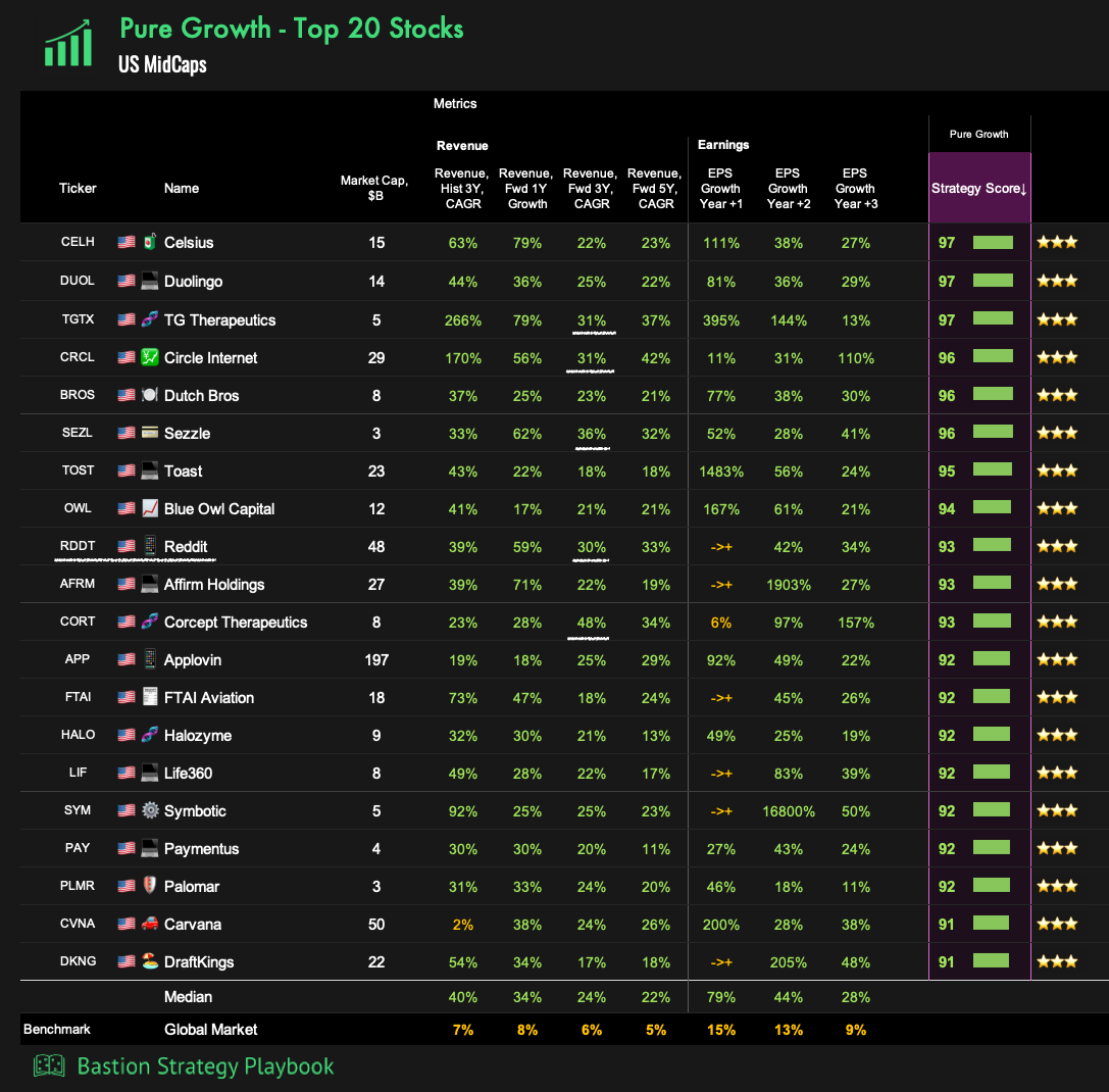 Only five companies on the list have expected growth rates above 30%, and one of them is Reddit. The social media platform has become the star of the Growth + Momentum MidCap portfolio, delivering outstanding returns over the past year.