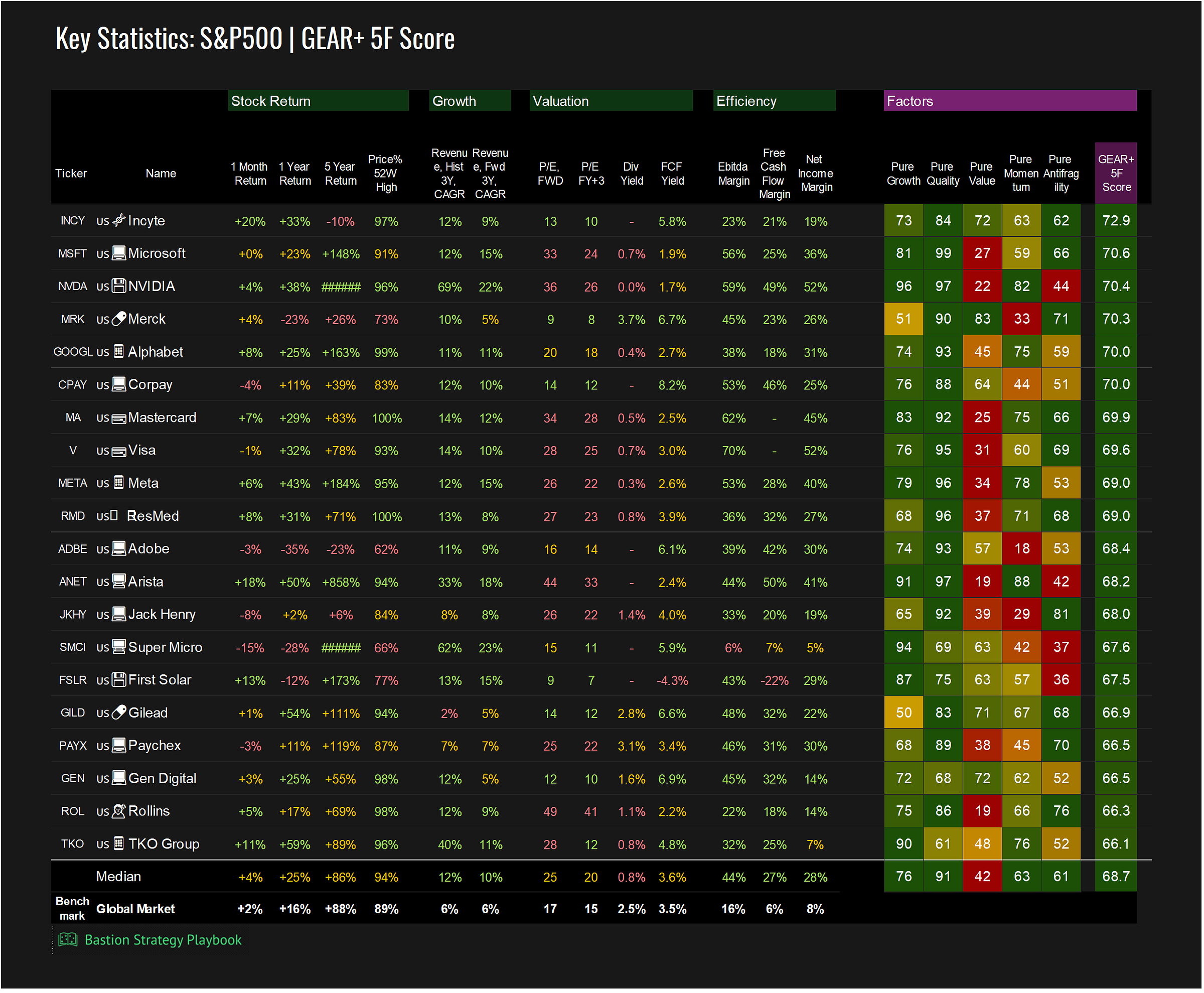 The Bastion Strategy Playbook delivers stock rankings across 9 fundamental strategies, over 30 interactive dashboards, and fresh weekly data. Its goal is to help generate investment ideas and provide deeper insight into market trends. The Playbook is designed for both professional analysts and private investors.